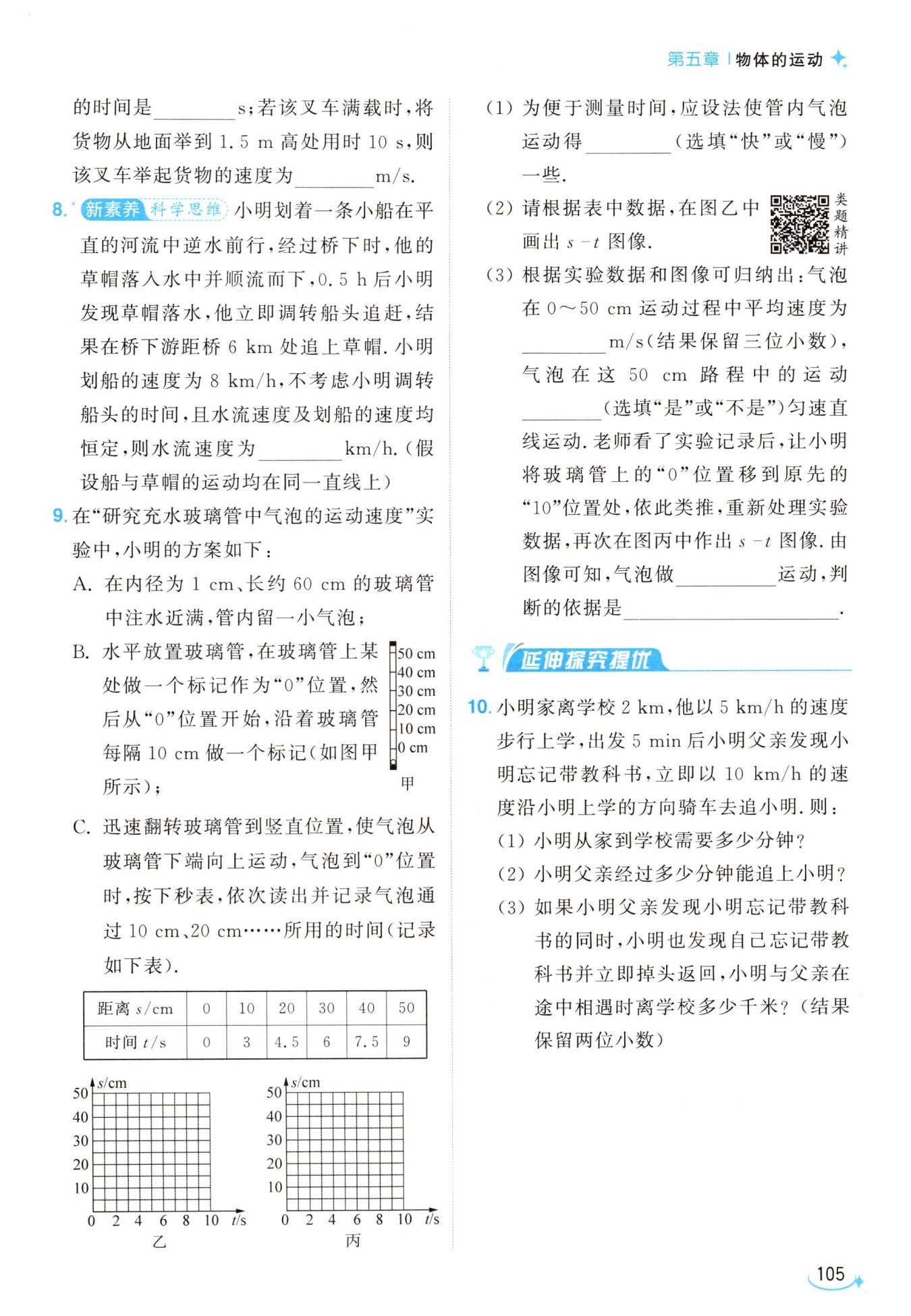 (3) 由 $ v = \frac{s}{t} $ 可得,出发 $ 5\mathrm{min} $ 小明通过的路程
