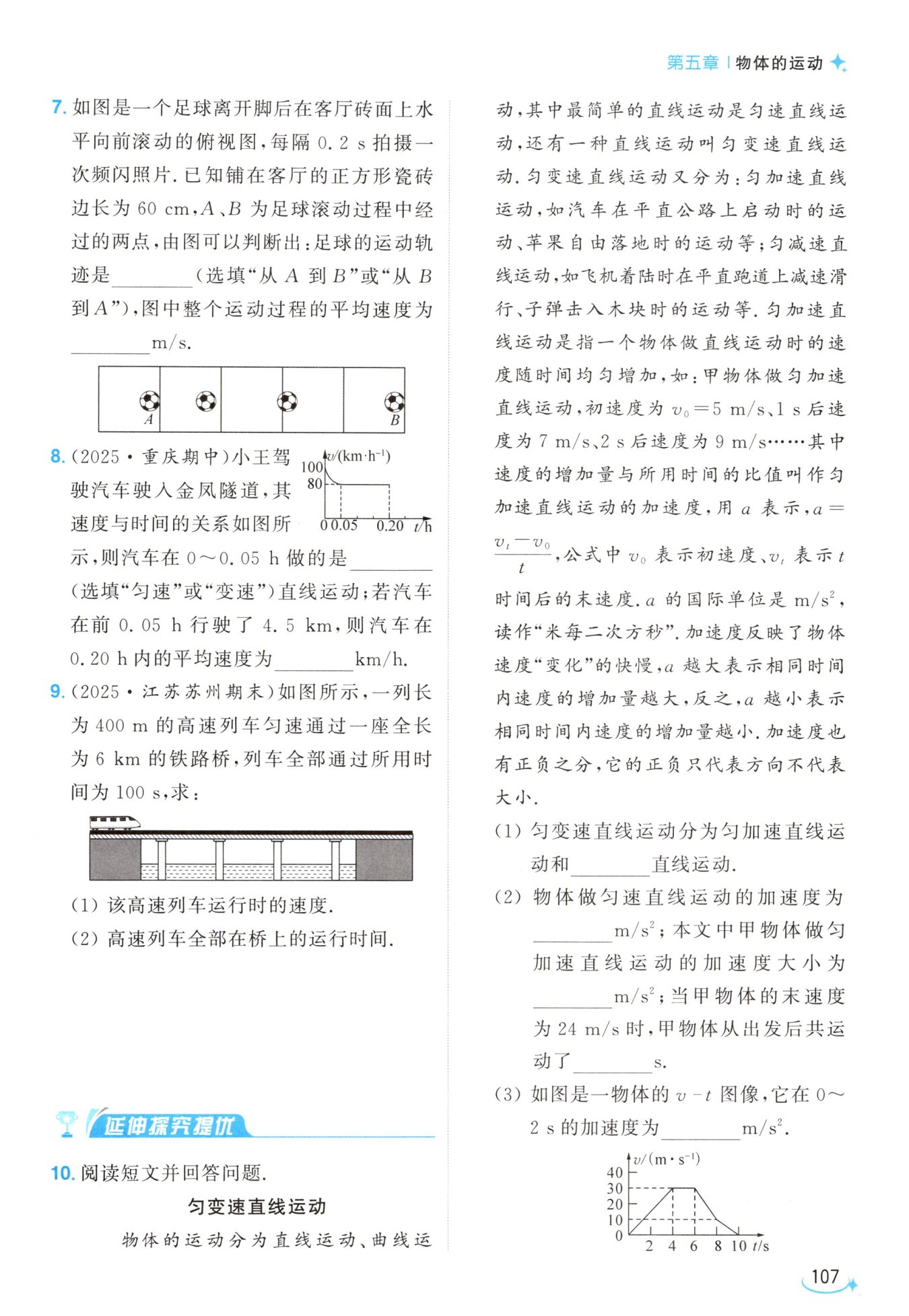 (2)高速列车全部在桥上运行的路程$s_{1}=l_{桥}-l_{车}=6000\ m - 400\ m = 5600\ m,$