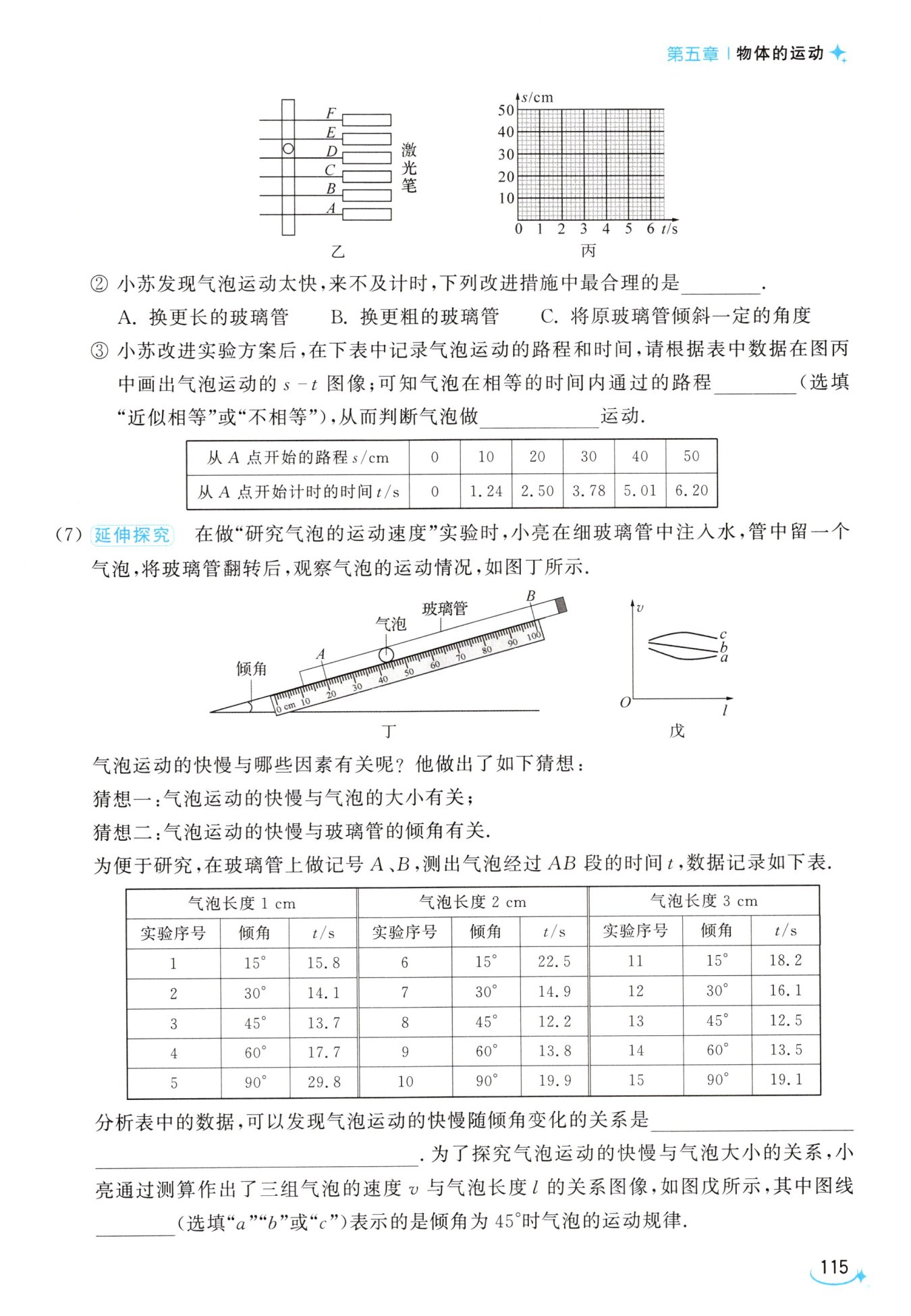 倾角变大,气泡运动的速度先变大后变小
