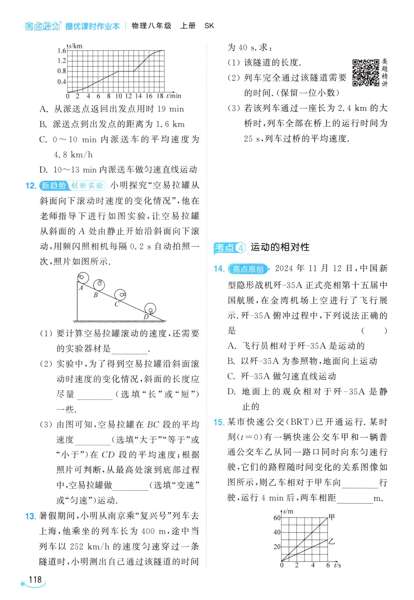 (3)解:大桥长$L_{桥}=2.4\text{ km}=2400\text{ m},$列车完全在桥上行驶的路程$s_{2}=L_{桥}-L_{车}=2400\text{ m}-400\text{ m}=2000\text{ m},$所用的时间$t_{2}=25\text{ s},$则列车过桥的平均速度$v'=\frac{s_{2}}{t_{2}}=\frac{2000\text{ m}}{25\text{ s}} = 80\text{ m/s}。$