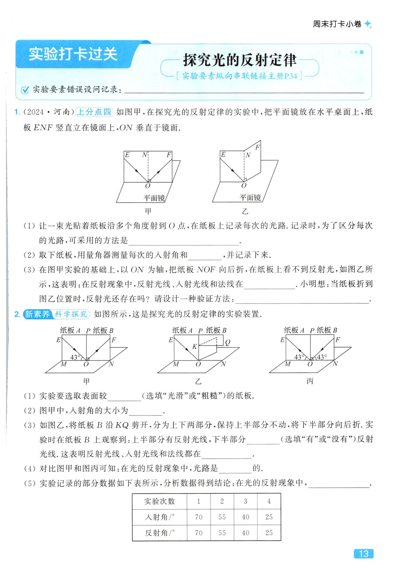 在纸板NOF的前方喷烟雾,看能否观察到反射光
