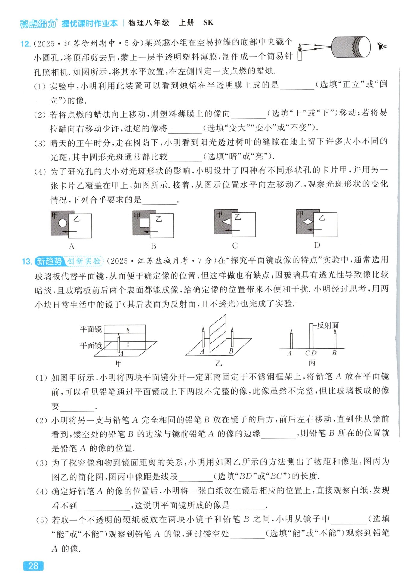 铅笔A的像