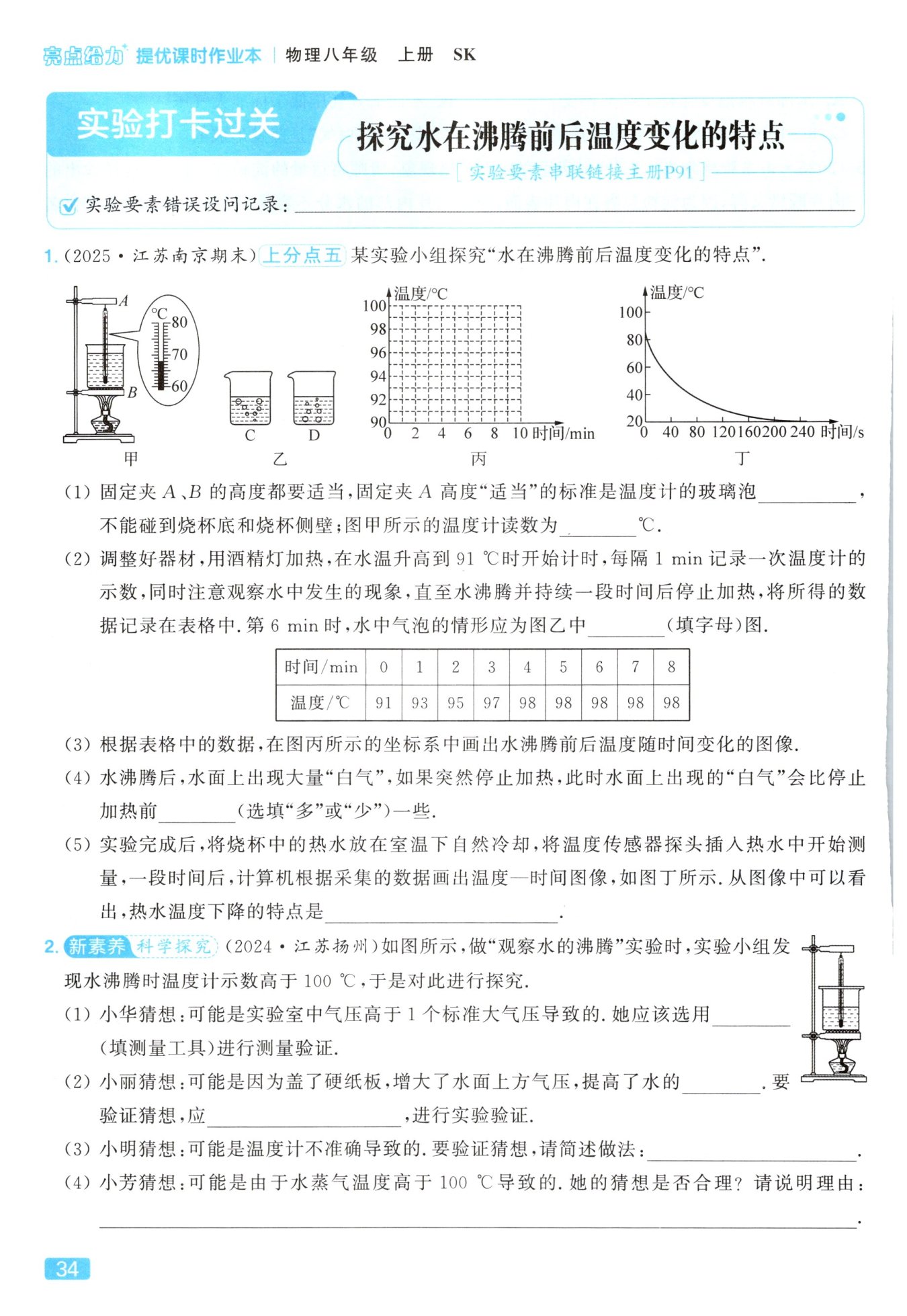 去掉硬纸板,观察水沸腾时的温度
