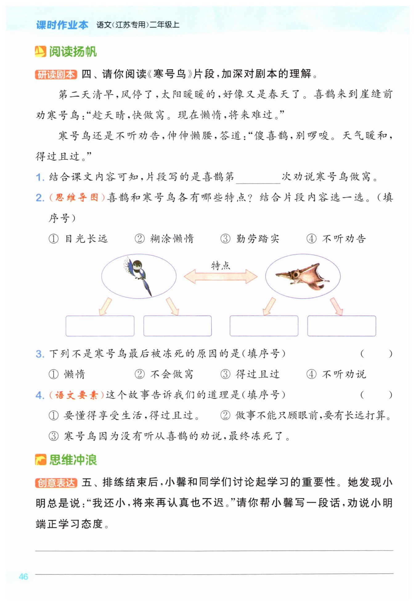 小明,你可不能像寒号鸟一样得过且过。“少壮不努力,老大徒伤悲!”你现在不