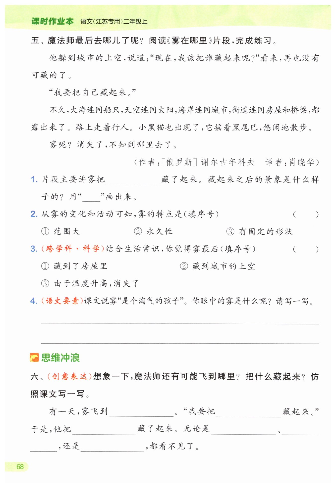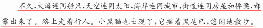 示例:在我眼里,雾是一位魔法师,只要他轻轻挥动魔法棒,整个世界就会