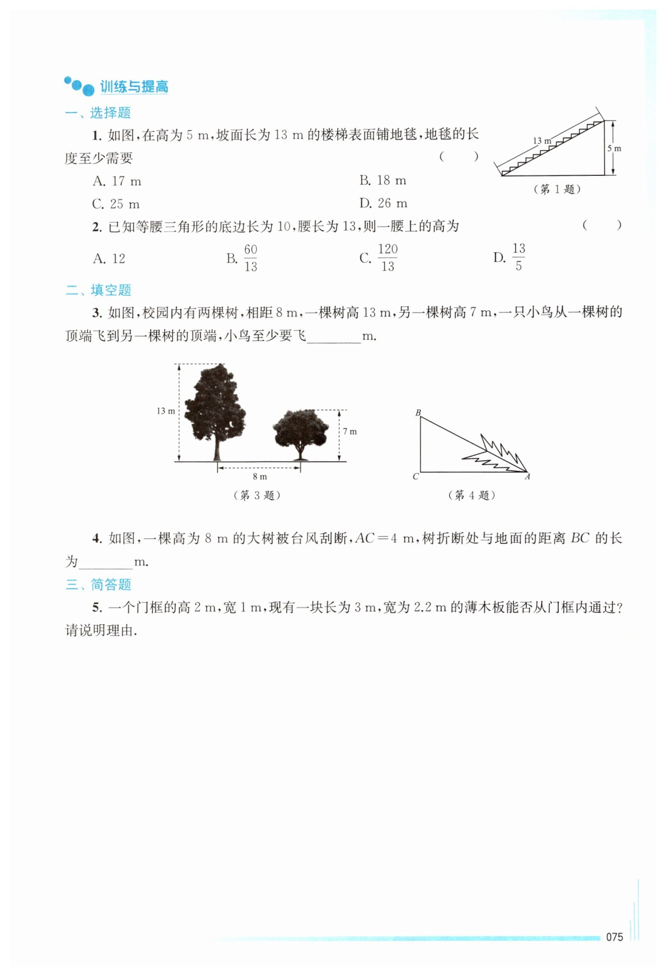 解:能通过。门框对角线长为$\sqrt {2^2 + 1^2}=\sqrt 5≈2.236\ \mathrm {m}$