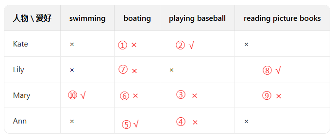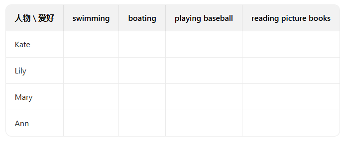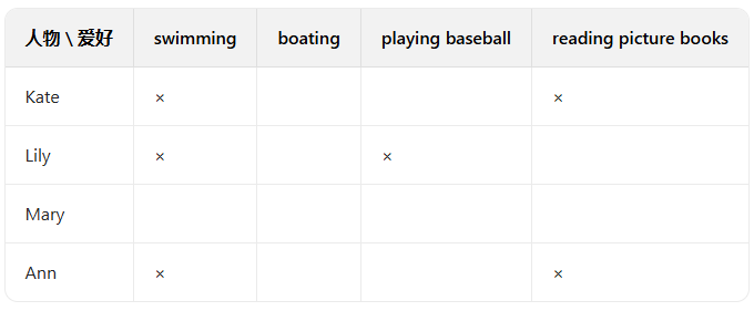 解析:第4-5行提到“Betty likes reading stories. Kitty likes reading science books.”(贝蒂喜欢读故事。基蒂喜欢读科学书),基蒂喜欢的是科学书,不是故事书,所以该句错误。