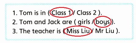 1. Class 1 2. boys 3. Miss Liu