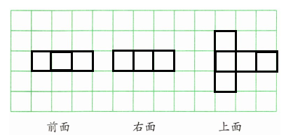 (2)从上面看到3个左右正方形(3列1排),底层3个,第4个叠放3列中任一列,共3种。