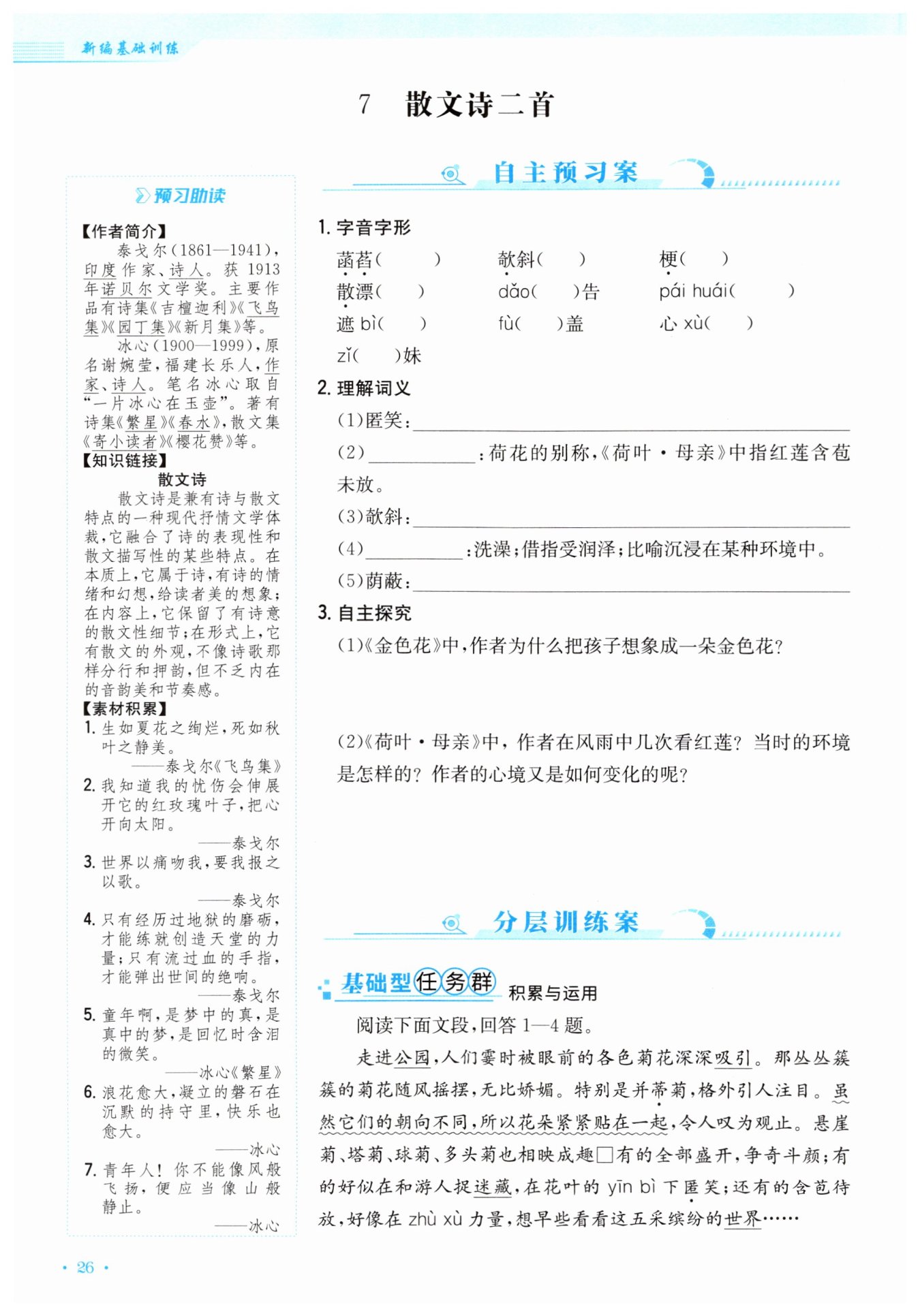 (1)泰戈尔把孩子想象成一朵金色花——最美丽的圣树上的花朵,赞美孩子可爱。那金黄的色彩,正反映着母爱的光辉,也象征孩子回报母爱的心愿。泰戈尔的想象新奇而美妙,增加了文章的趣味性。