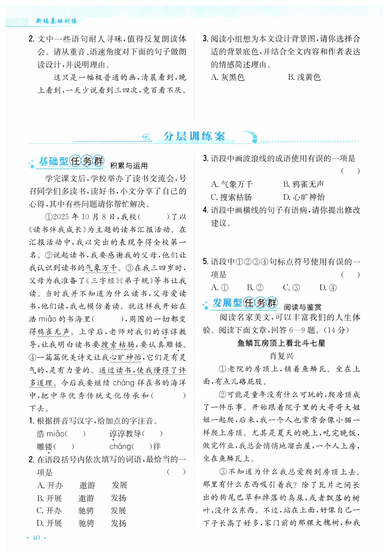 选择B。本文所记叙的内容都是让作者记忆深刻的美好往事,留给作者的回忆是温馨的,画作有趣、书籍精彩、老师讲课生动,浅黄色明亮且让人感到舒适、愉悦,能够让人感到温暖,且能体现作者笔下往事美好的特点。
