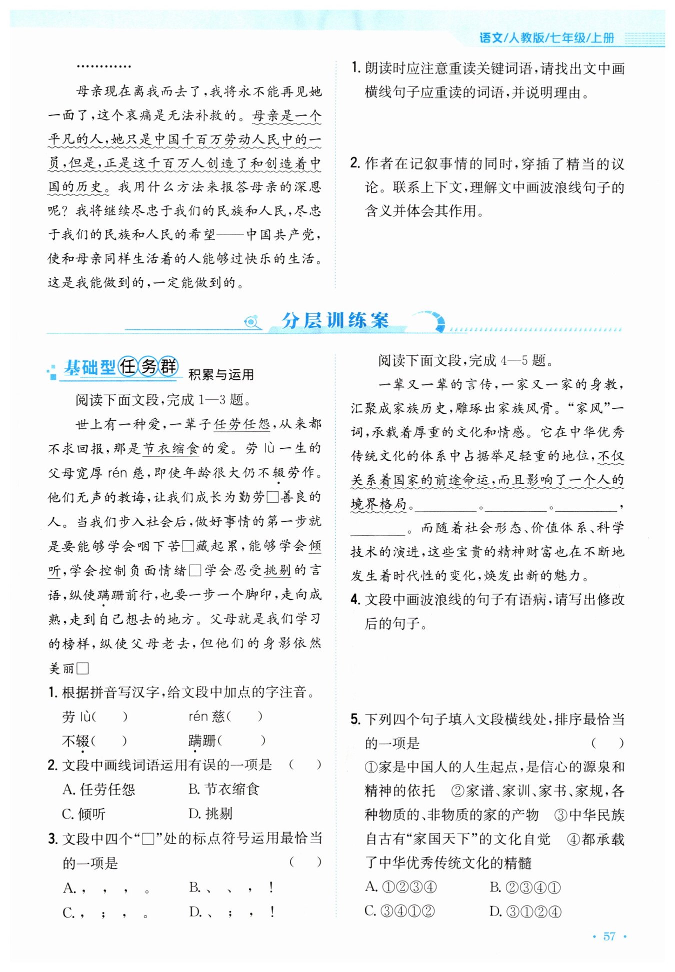 重读“四五岁”“八九岁”。因为这两个词凸显了作者年幼就帮母亲劳动,“四五岁”该玩耍却帮忙,“八九岁”已掌握诸多劳动技能,强调成长之早,侧面烘托母亲的勤劳,重读强化反差,让读者体会深意。
