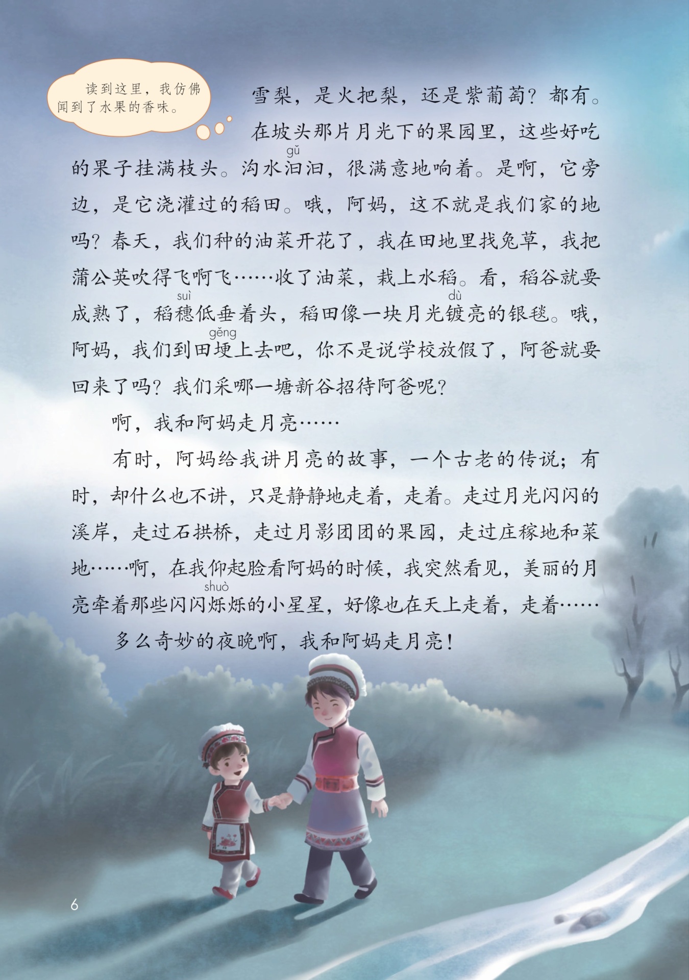 阿妈在田埂上走月亮。