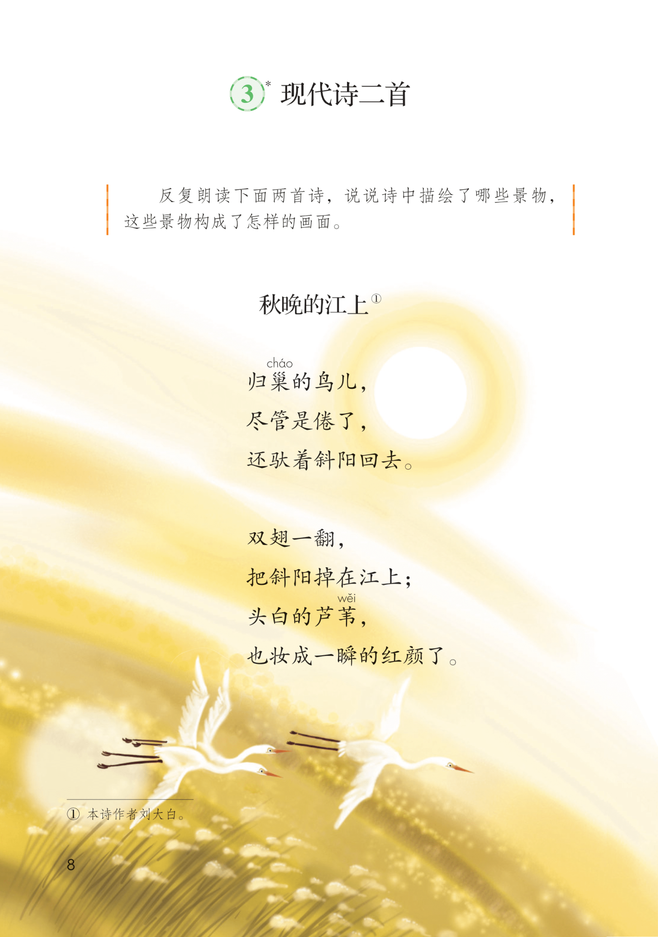 中心思想:《秋晚的江上》是一首描写秋天的新诗,它采用了当时流行的小诗体。