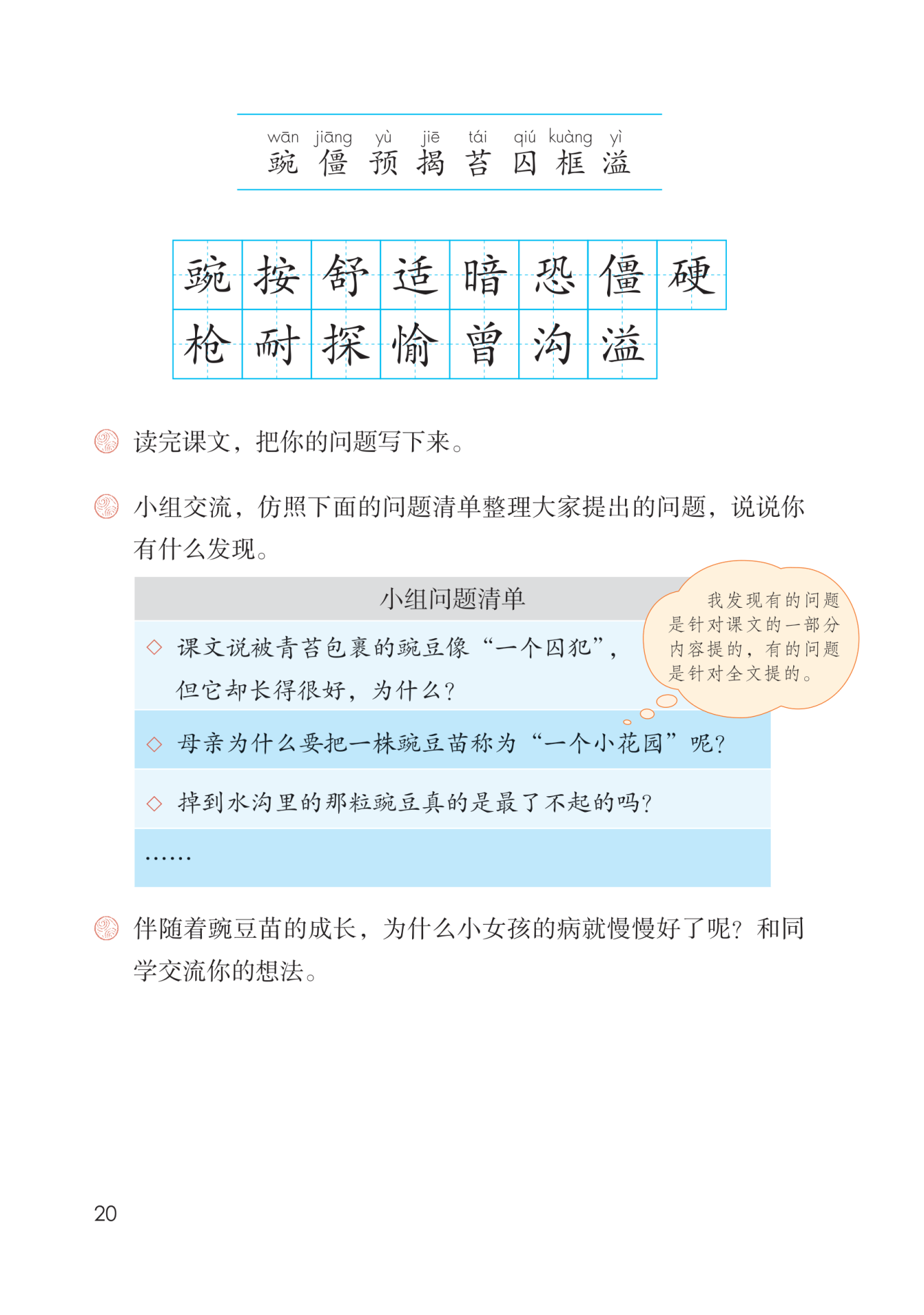 认真读童话的第三部分,弄清豌豆苗的生长情况和小女孩身体的变化情况,想一想豌豆苗的生长和小女孩病情的关系,体会豌豆苗的生长给小女孩带来的生机与活力。