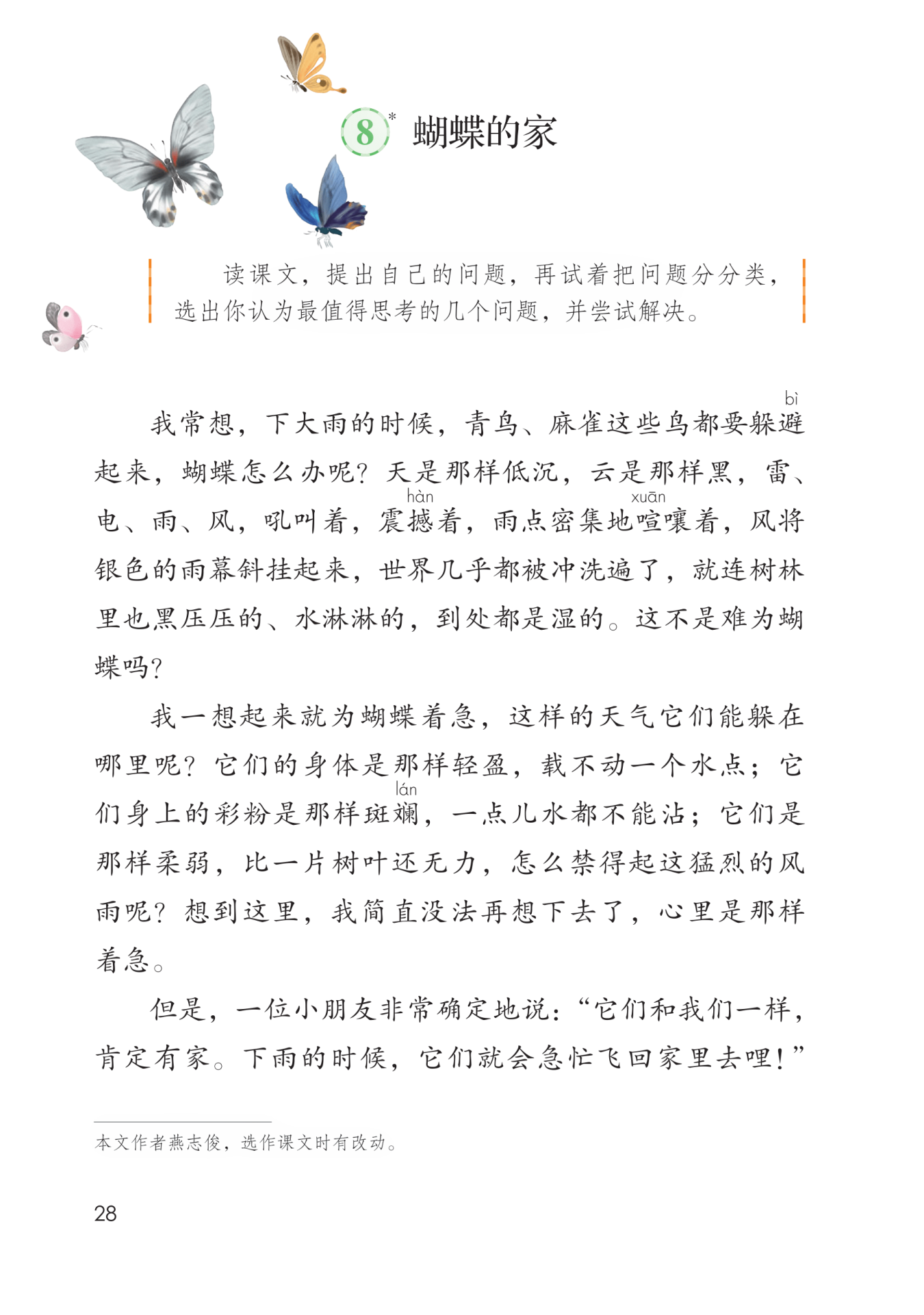 柔弱,充分体现了作者对蝴蝶的同情心和爱心。