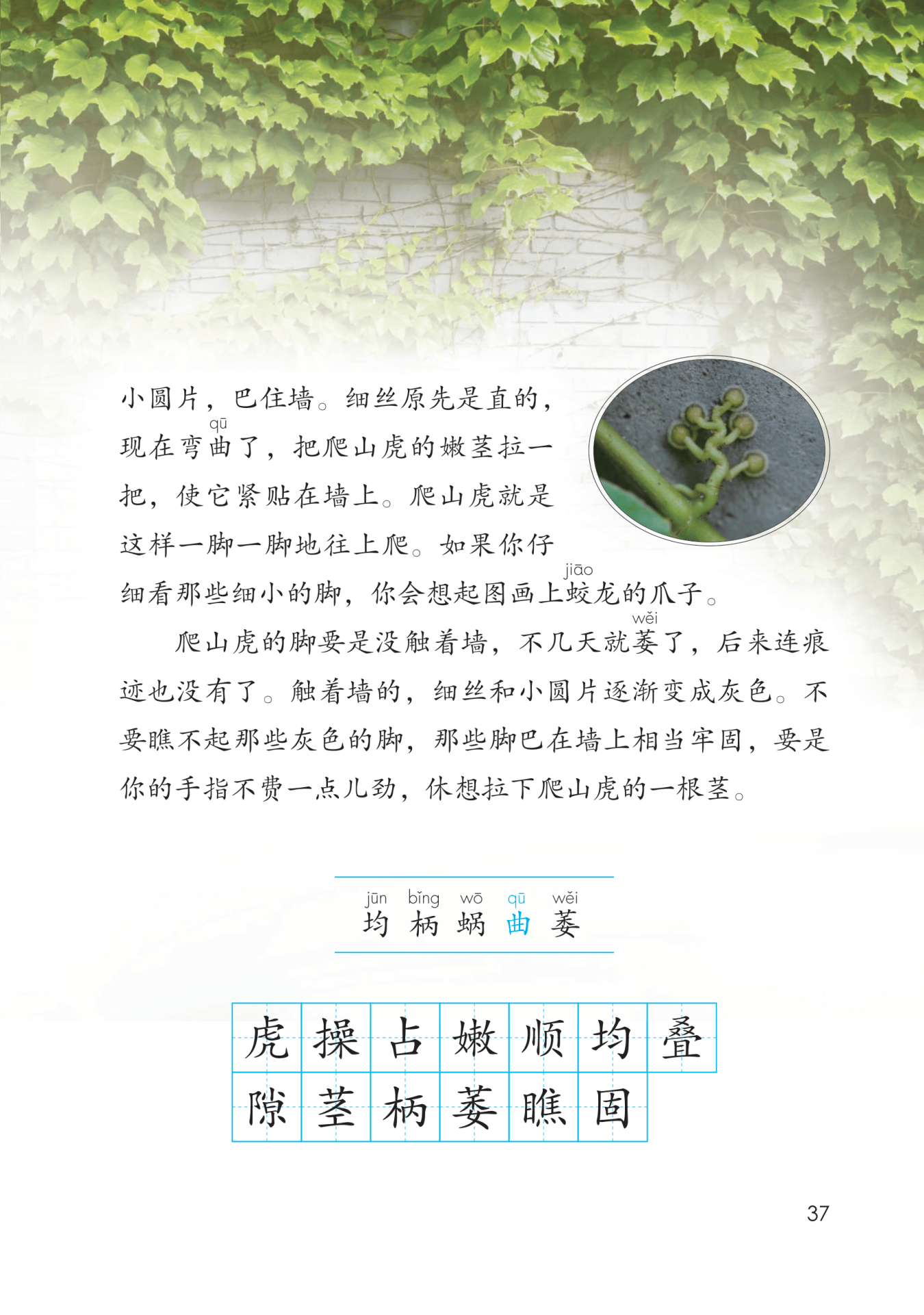 第三部分(③~⑤):详细地描写了爬山虎脚的变化以及一步一步向上爬的过程。