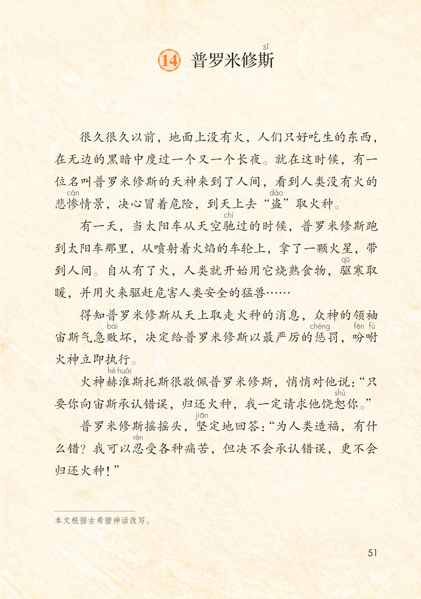 犯天规,勇敢地“盗”取火种,从而为人类带来了光明和智慧,并与宙斯进