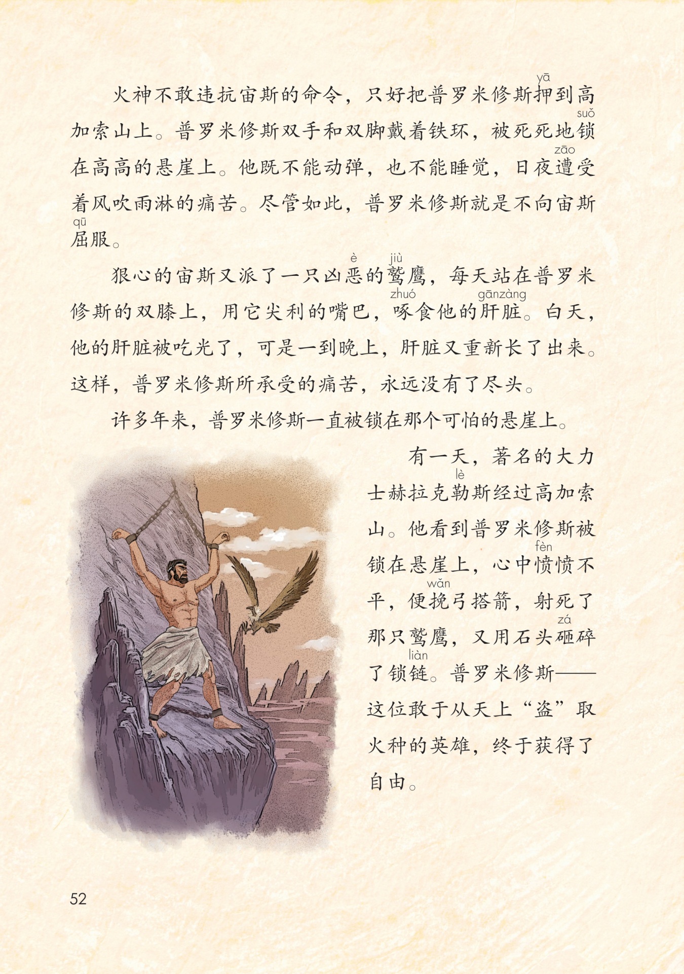 这里“死死地”说明锁得十分牢固,可见宙斯对他的惩罚十分严酷。