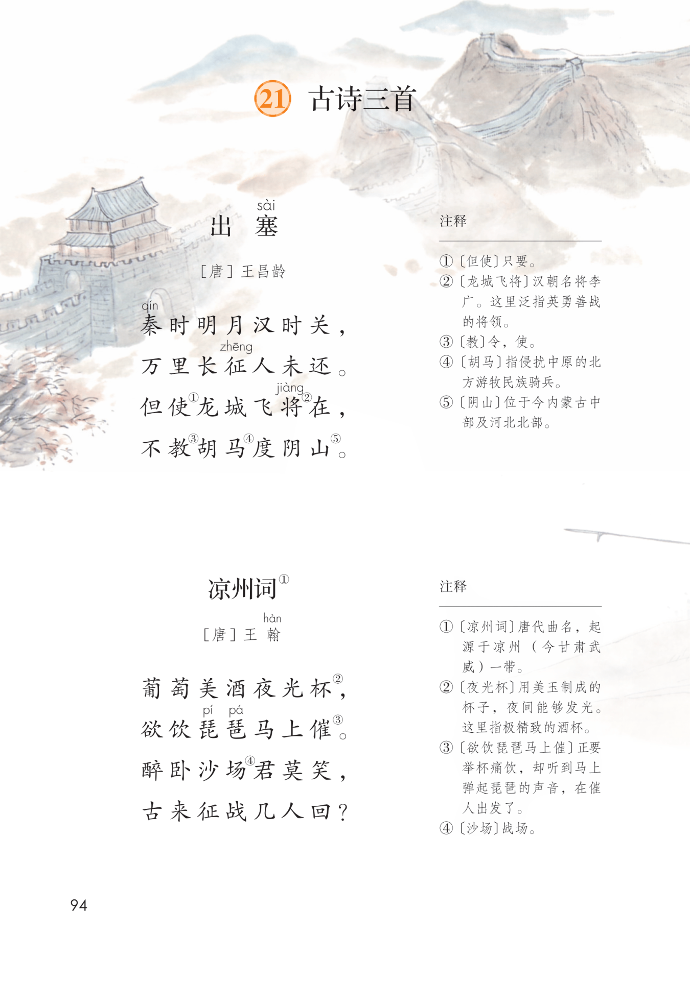 中心思想:《出塞》这是一首描写军旅生活的诗。这首诗反映了作者