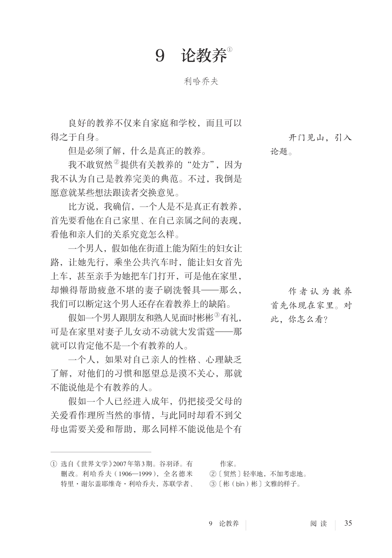 主题思想 本文通过列举大量 “有教养” 和 “无教养” 的实例,深入浅出地论述了什么