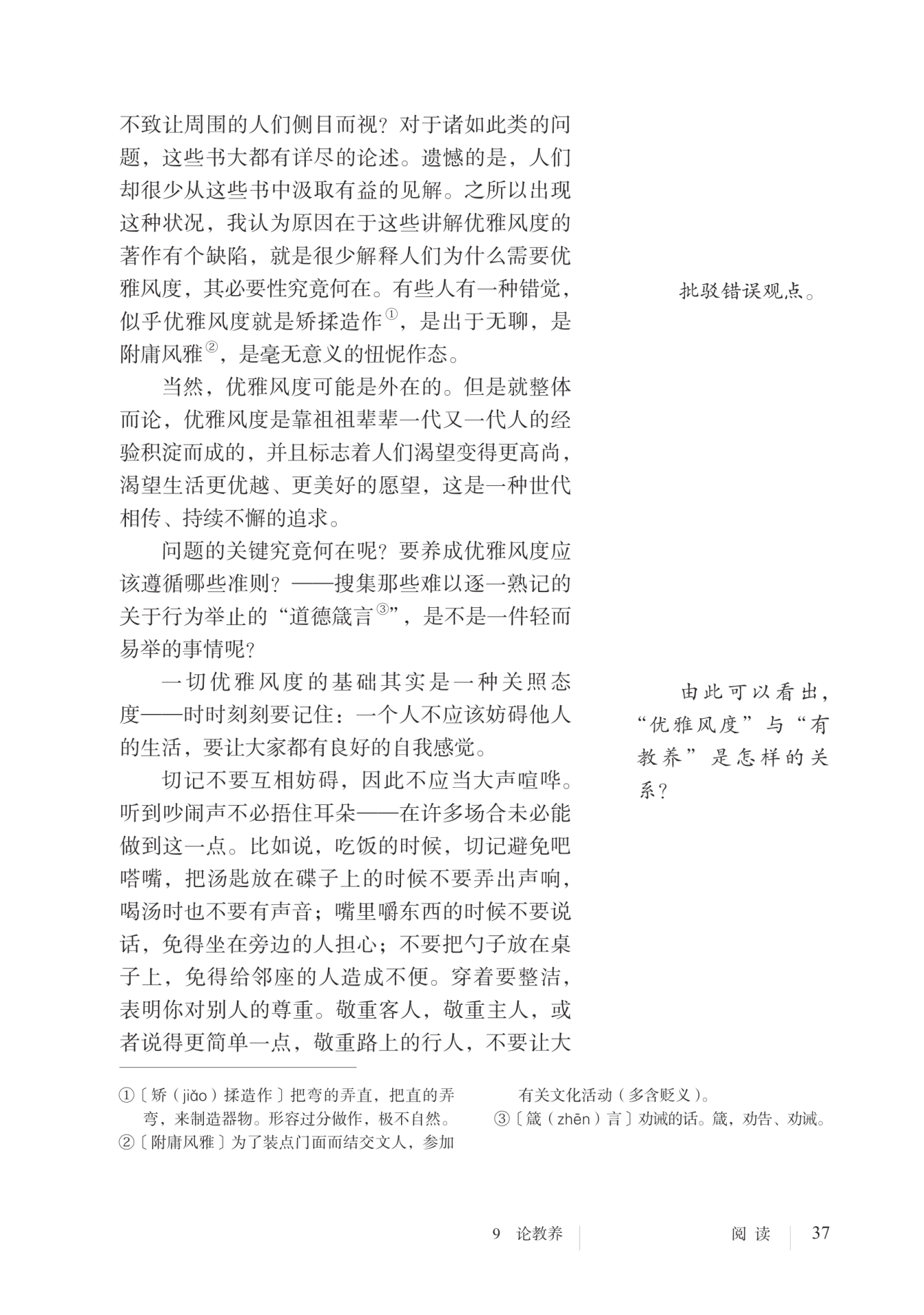 连用三个问句引发读者思考,引出下文对优雅风度内涵的探究。
