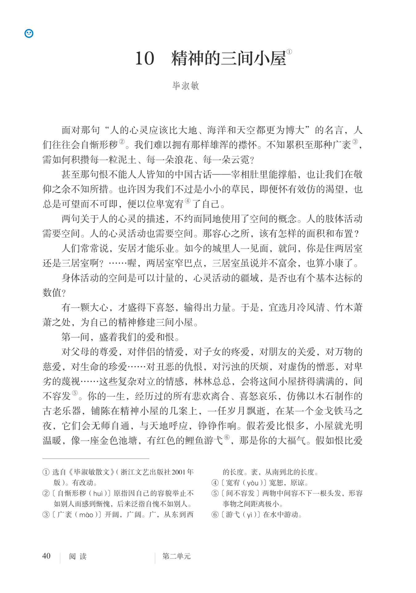 主题思想 这篇说理散文融议论、描写、抒情为一体,以三间小屋为载体,论述了