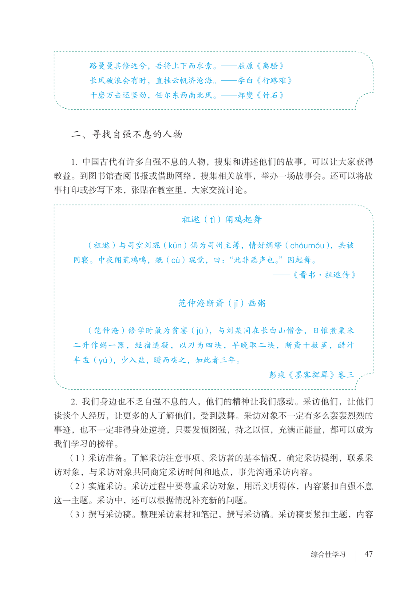 延伸阅读 中国古代一些自强不息的人物及其事迹:
