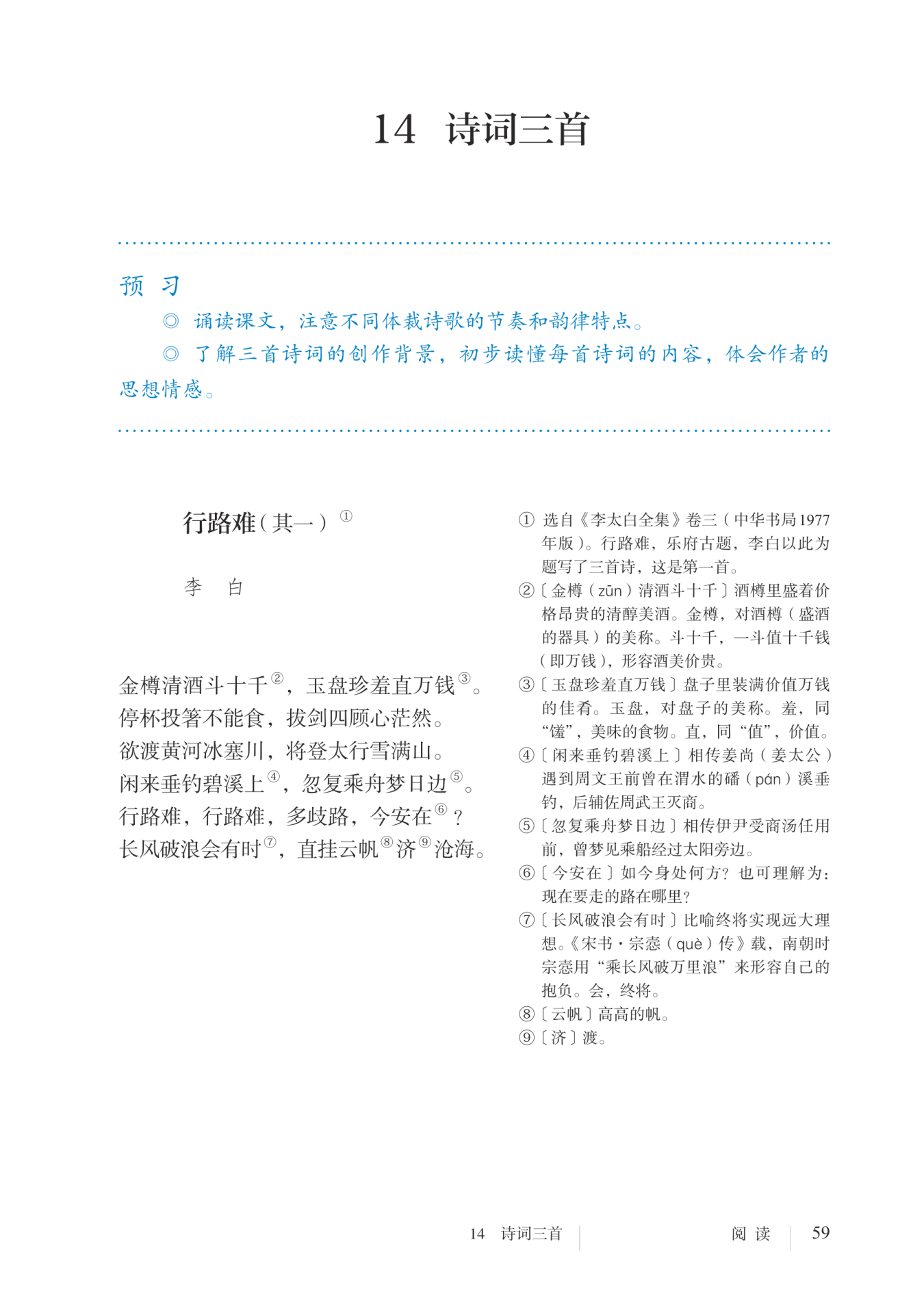 河,黄河却被冰封住,想要登上太行山,大雪满山掩埋了山路。(我想像姜尚那样)闲