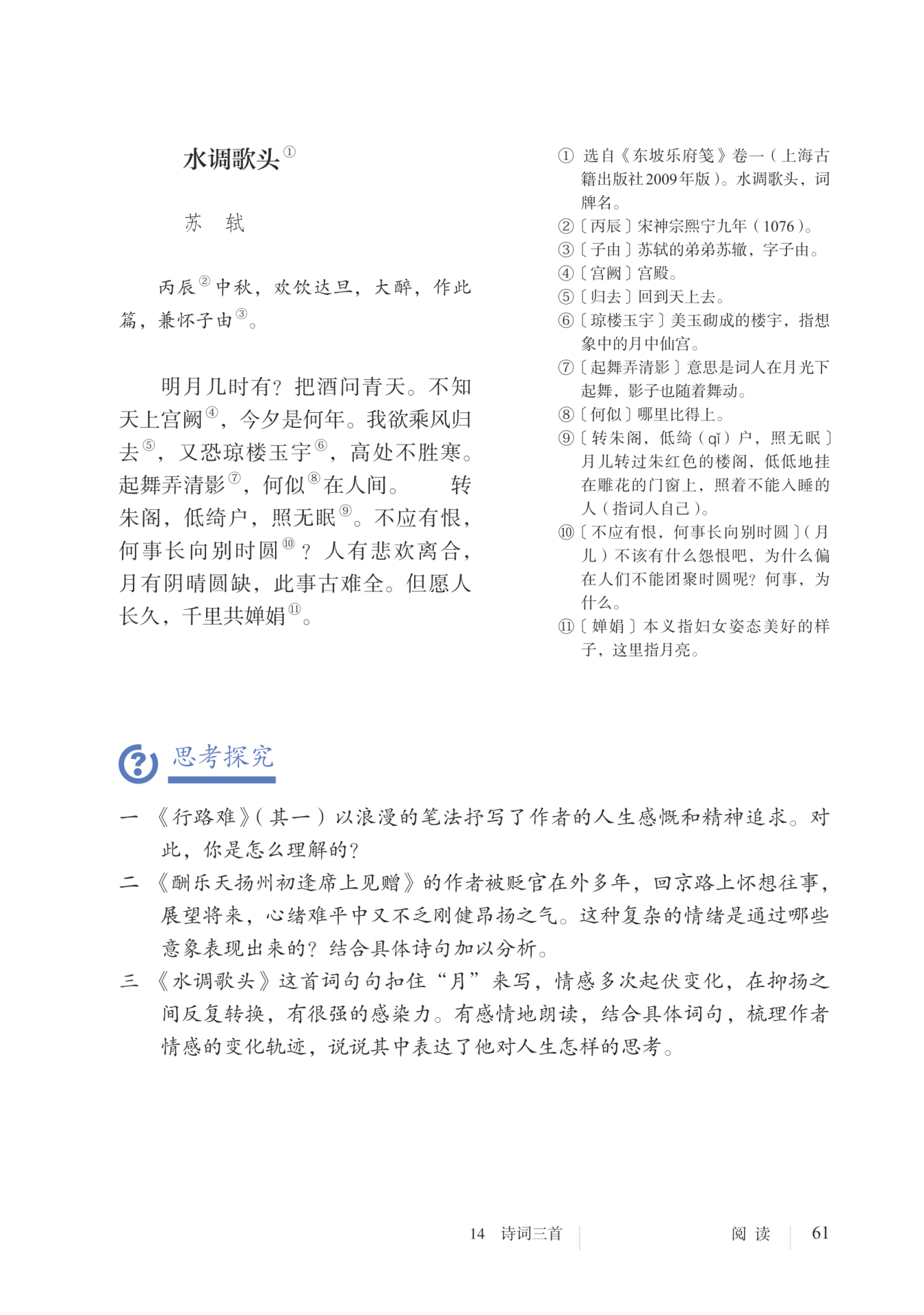 问老天。不知道天上的宫殿里,今晚是哪一年。我想要乘着风回到天上去,又害怕在美玉砌成的楼宇中,抵御不住高处的寒冷。