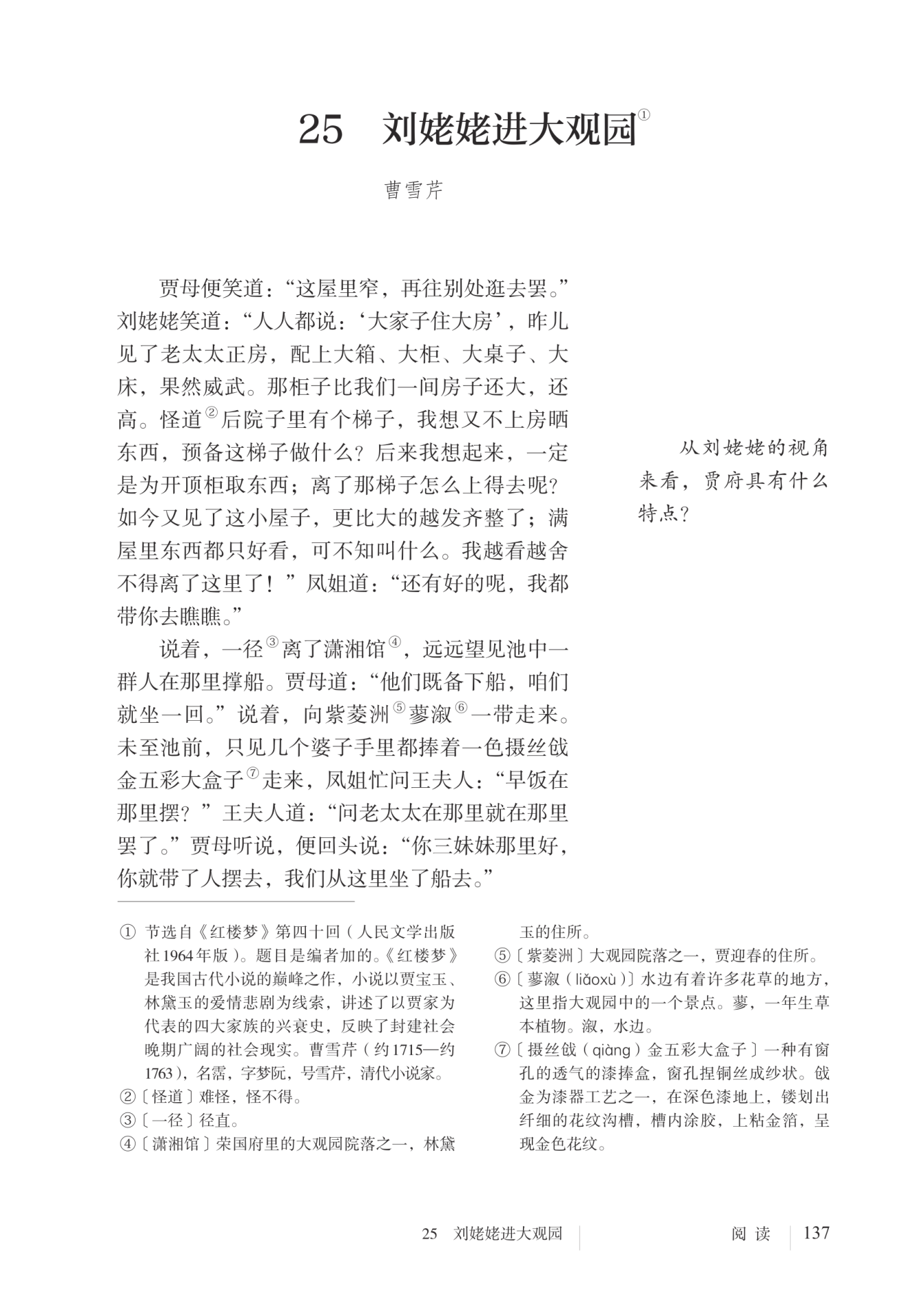 曹雪芹 刘姥姥曾“三进大观园”,本文写的是第二次。