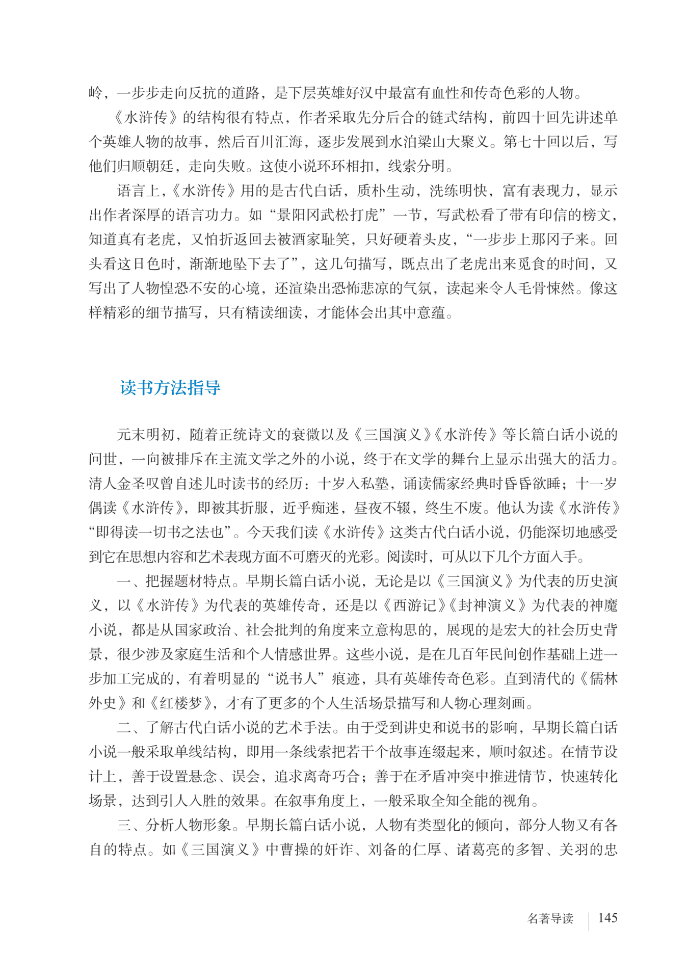 《水浒传》与《三国演义》成书时间相近,《三国演义》以史料为主干,文白夹杂,而《水浒传》使用的是流利纯熟、生动活泼的白话,自此确立了白话文在小说创作上的优势。《水浒传》堪称中国白话文学的一座里程碑。