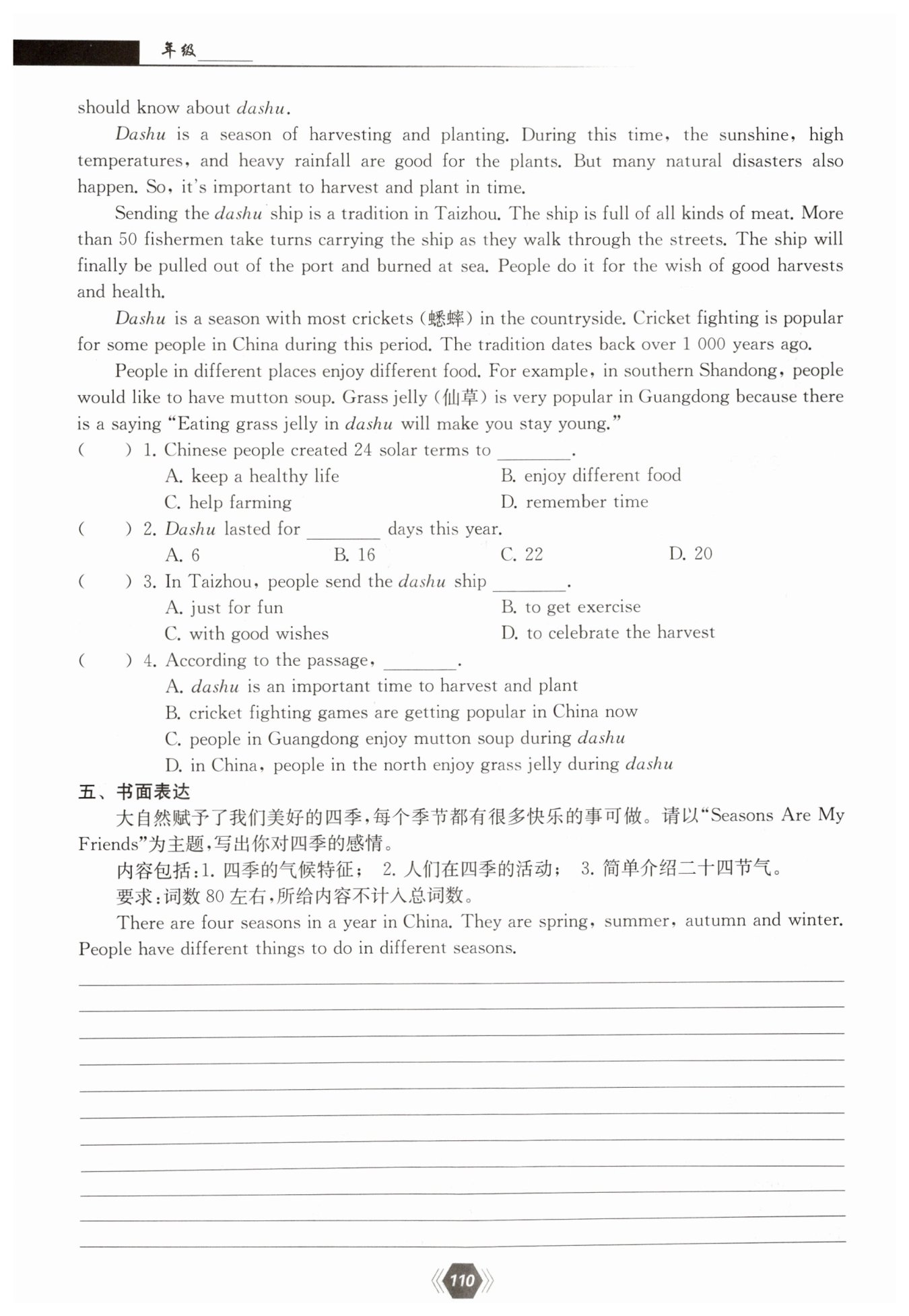 I like seasons in China. And they are like our friends.
